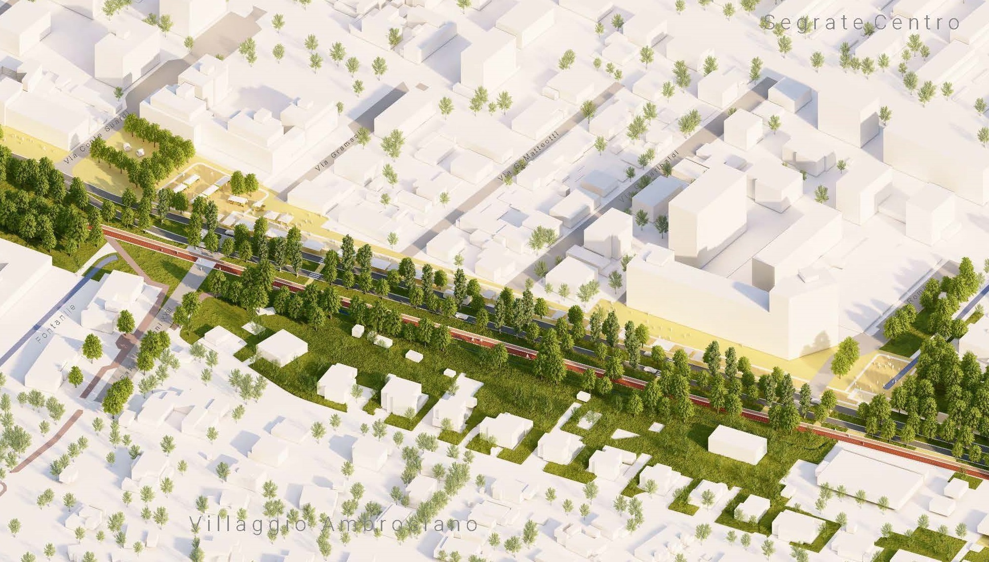 L’area di intervento è di 3,2 km ed è stata divisa in tre settori di circa un km ciascuno, il primo da Lavanderie alla rotonda dell’Esselunga, il secondo la zona industriale Marconi e il terzo e ultimo da Rovagnasco a via Morandi. Il punto chiave del progetto è il dimezzamento delle corsie, destinate a un traffico locale con limite di velocità a 30 km/h. Da qui l’apertura di nuovi spazi tra percorsi ciclopedonali, aree verdi, attraversamenti a raso invece che tramite ponti e dei “boulevard” nei pressi delle zone abitate – Lavanderie e Segrate Centro – con spazi dedicati al commercio di vicinato. “Senza sacrificare i parcheggi”, ha assicurato l’assessore Di Chio. “Così si potrà ricucire la città, mettendo in connessione i suoi parchi”, secondo Vasini.