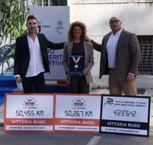 L’assegnazione è legata allo straordinario record mondiale dell’ora della ciclista su pista Vittoria Bussi, che ha infranto il muro dei 50 km/h battendo il proprio precedente record del 2023. Il CONI ha premiato l’atleta con il Collare d’Oro e con la palma il team di allenatori composto da Coratella e da Luca Riceputi. “In tre anni e mezzo di lavoro insieme, Vittoria ha raggiunto e frantumato record dell’ora e nell’inseguimento, oggi imbattuti – racconta Coratella – per me è un traguardo importante, ho dimostrato che, pur non venendo dal ciclismo, l’applicazione del metodo scientifico all’allenamento consente di arrivare ai massimi livelli.”