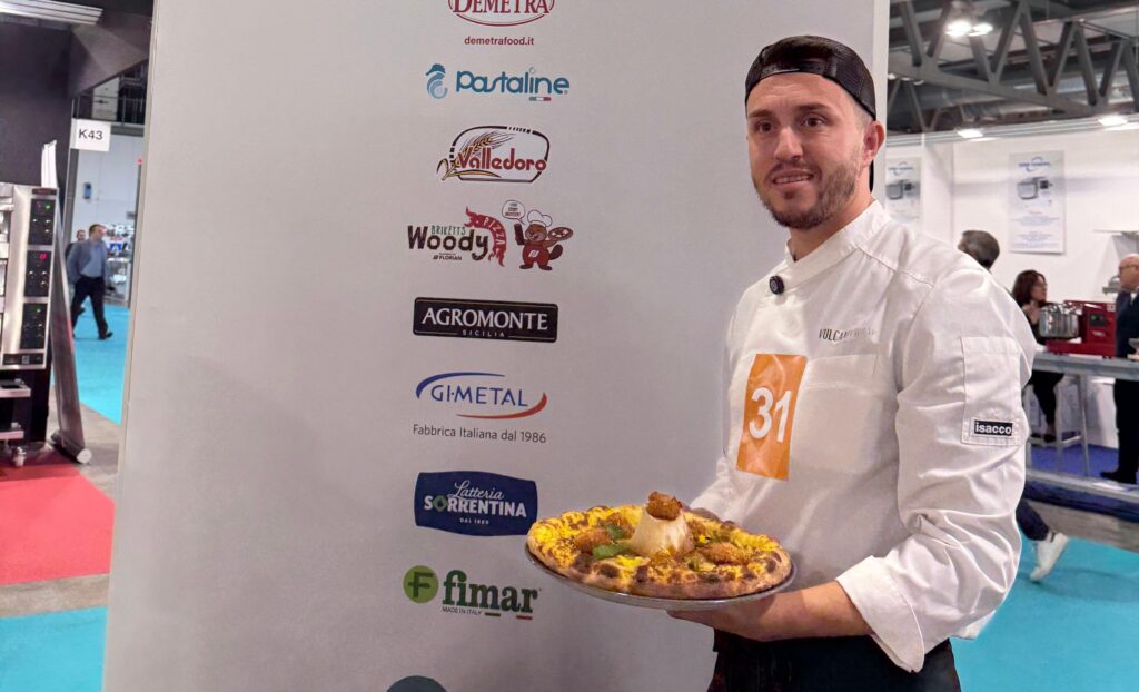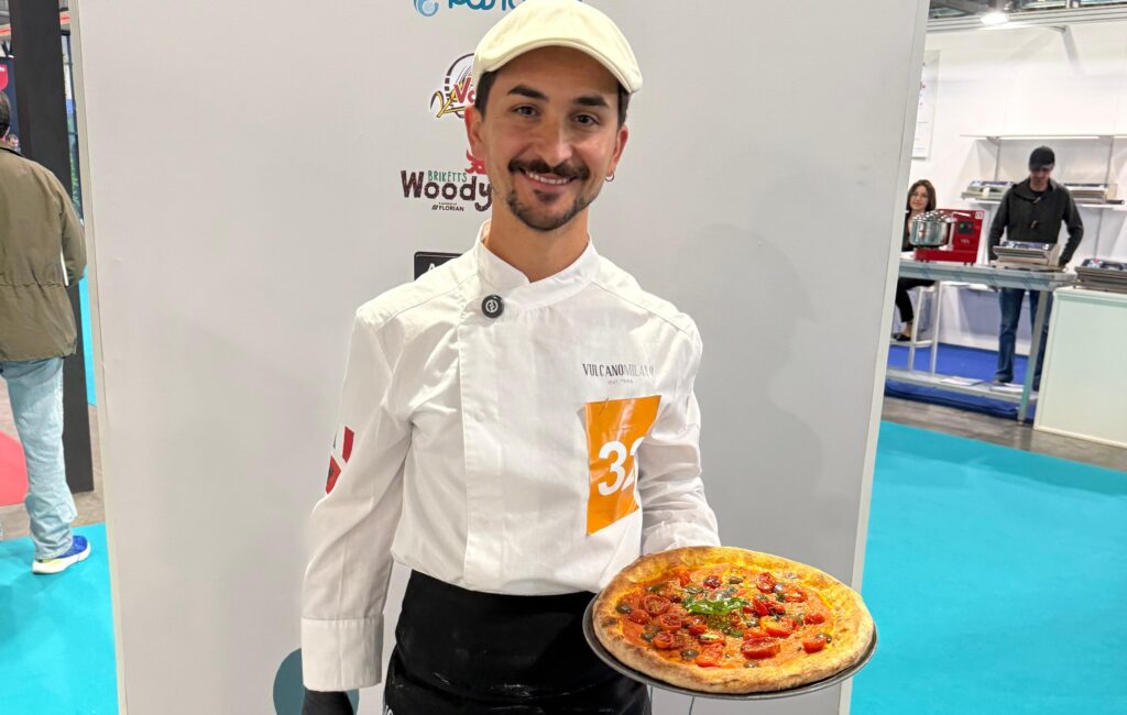 Alban Hoxha con la “Pizza all’ossobuco” presentata agli Europei di Pero
