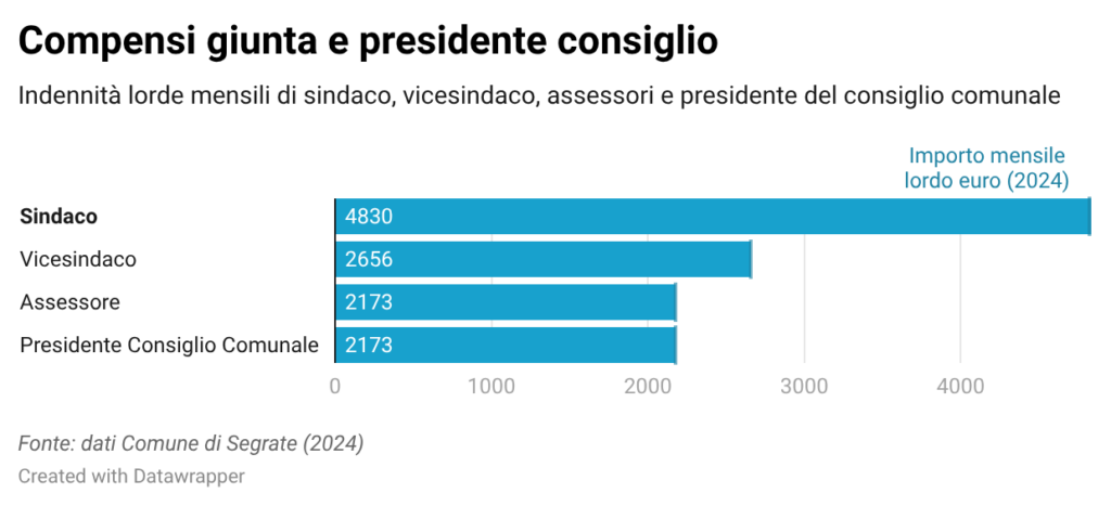 Nel caso attuale di Segrate la giunta è composta da sei assessori, oltre al sindaco e al vicesindaco. Considerando le indennità piene e includendo anche il compenso del presidente del consiglio comunale, la spesa complessiva può arrivare a circa 272.364 euro annui lordi, tratti dal bilancio comunale.