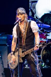 Non è la trama di un film, è la sorpresa che Mauro Merlino, free-biker e artista ufficiale di Harley Davidson Italia, sta preparando per la prima data italiana del tour degli Hollywood Vampires, supergruppo di Depp (foto sotto) assieme a Alice Cooper, Joe Perry e Tommy Henriksen.